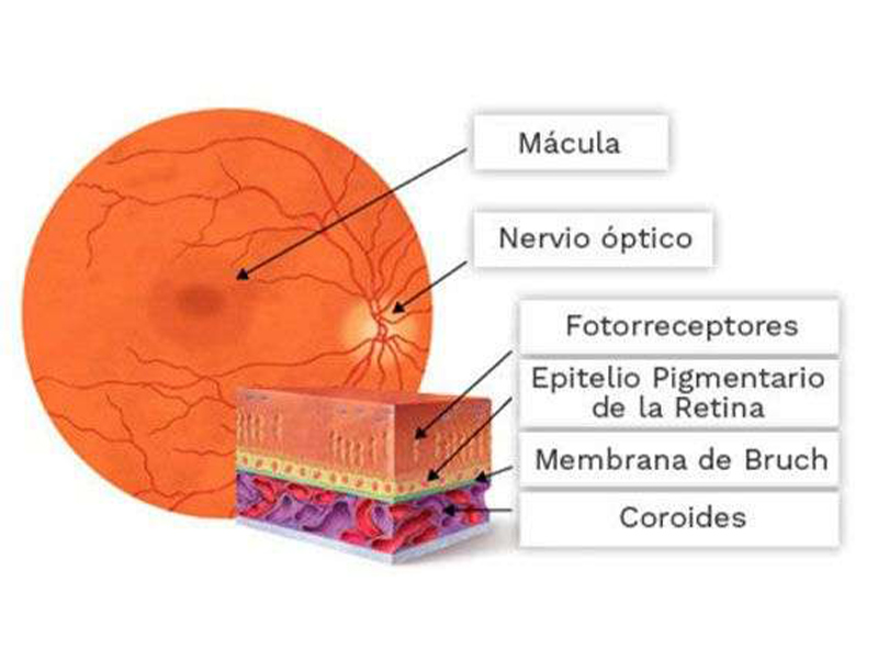 - Degeneración macular relacionada con la edad (DMAE).